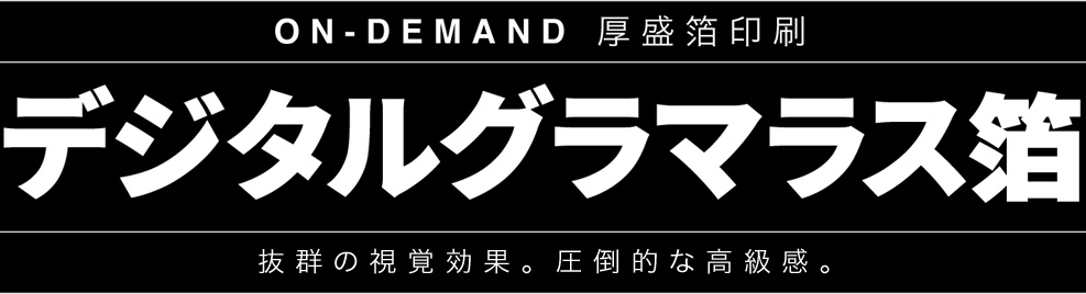 購買候補者に対する最後の一押しには、趣向を凝らした印刷物のプレミアム感が高い効果を発揮します。 抜群の視覚効果に加えて、触り心地でも高級感が分かるのが、弊社のオンデマンド厚盛箔印刷「デジタルグラマラス箔」お客様の印刷物に、圧倒的な差異化・付加価値の創造をご提供いたします。