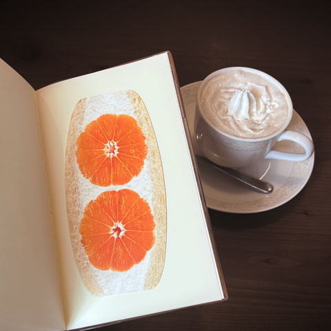 フルーツの表情が楽しくて美しいフルーツサンドの断面を、高品質印刷でみずみずしく再現しました。