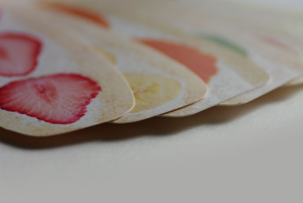 フルーツの色味や繊維のディテールまでこだわり抜いた印刷表現は、印刷会社ならではの技術と経験の融合。