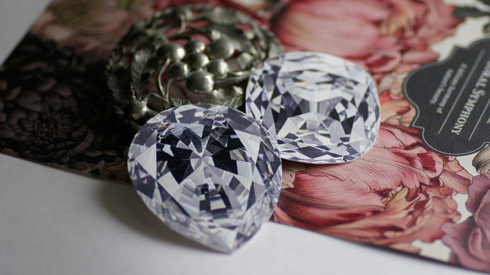 フリーカットで輪郭を丁寧に抜き、宝石の形そのままに仕上げています。