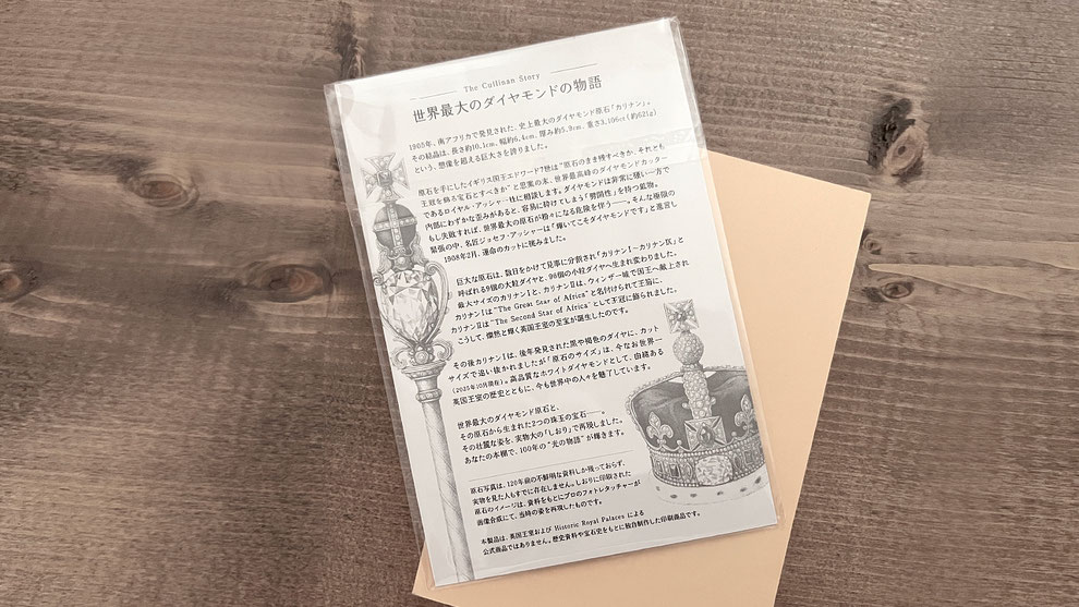パッケージ裏面には「カリナンの発見と誕生の物語」を掲載。ちょっとしたプレゼントや記念品にも最適です。